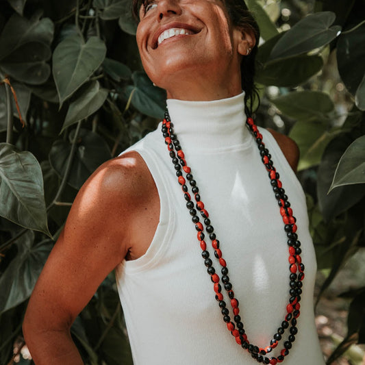 Colar de Sementes Olho de Cabra Vermelho e Preto Povo Rikbaktsa