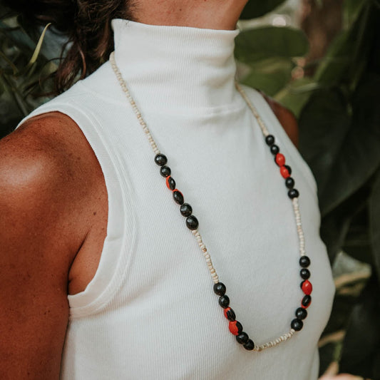 Colar de Sementes Bege Preta e Vermelha Povo Rikbaktsa