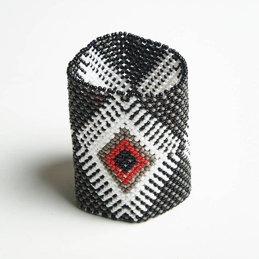 Pulseira de Miçanga Branca Preta e Vermelha fio Elástico Povo Kamayurá