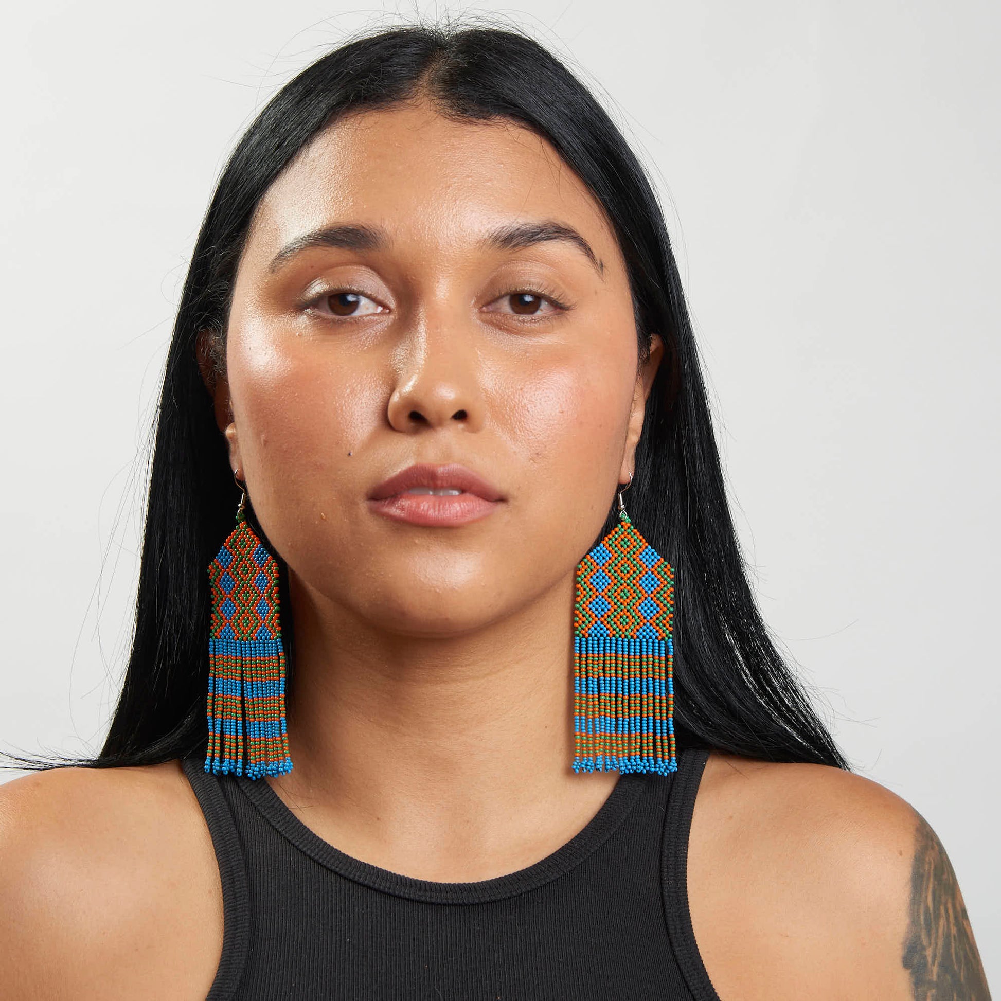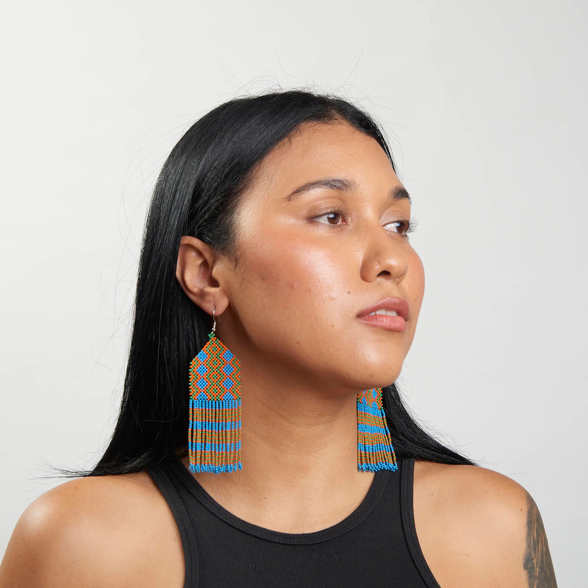 Descrição Brinco Artesanal de Miçanga Povo Kayapó