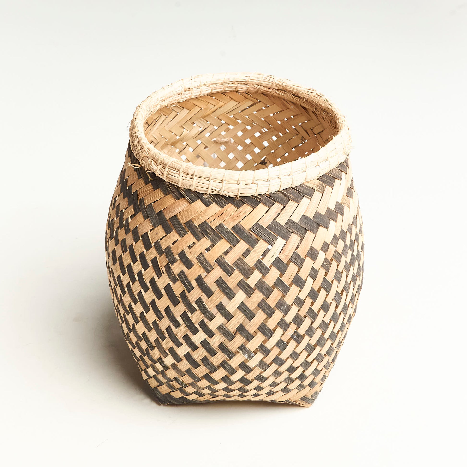 Renove a decoração da sua casa com o Cesto de Fibra Natural Povo Kanela, feito com Fibra de Buriti e o icônico grafismo indígena, criado pelo povo Kanela. Com tamanho aproximadamente Altura 21cm x 18cm Largura. Dê um toque especial à sua decoração e apoie a valorização da cultura com essa peça artesanal única.