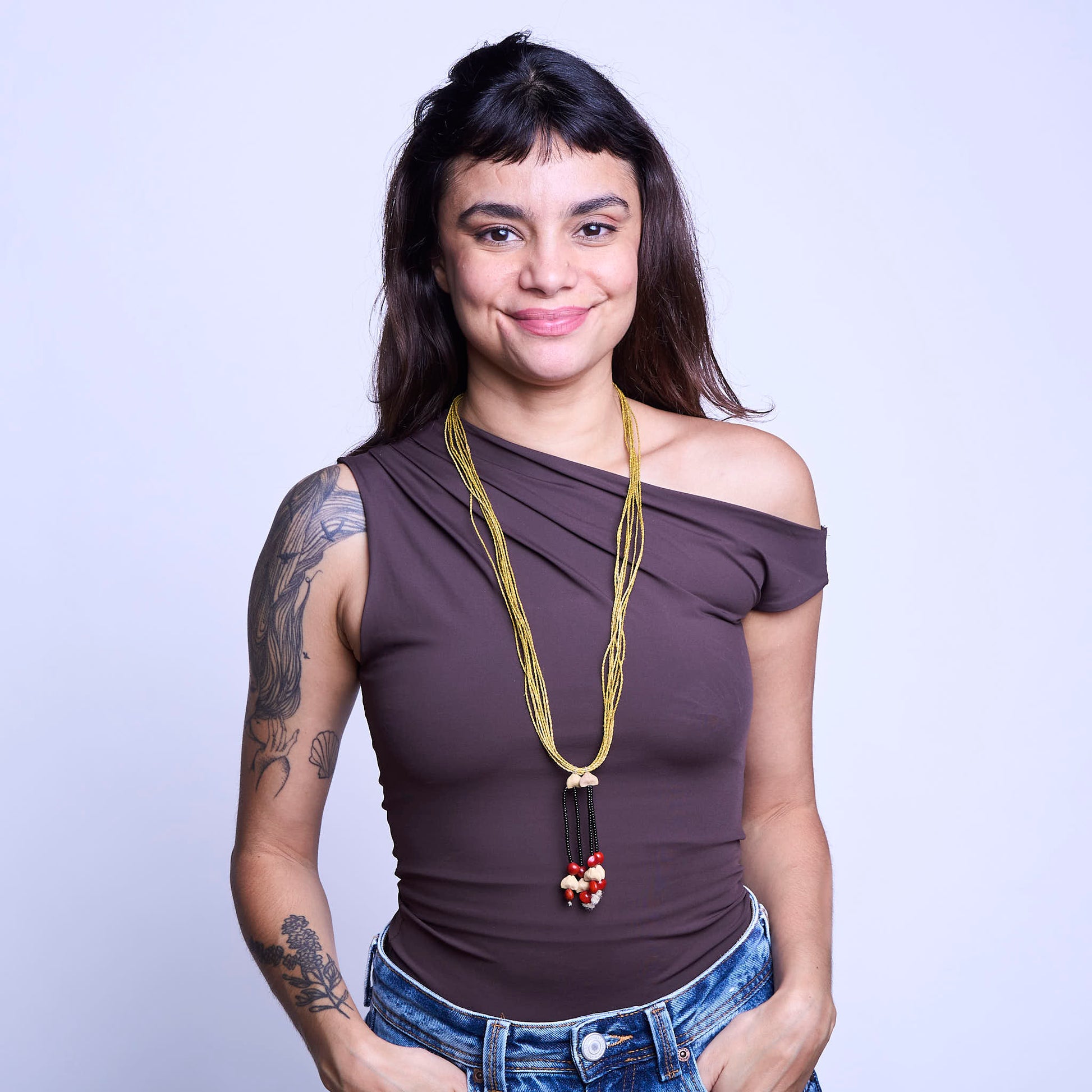 Uma mistura de tradição, beleza e consciência social está presente em Colar de Sementes Povo Indígena Krahô, uma peça artesanal única de comprimento 80cm feita com sementes. Design exclusivo criado pela artesã Raquel Krahô, esse colar é uma afirmação da moda com propósito e da valorização cultural.