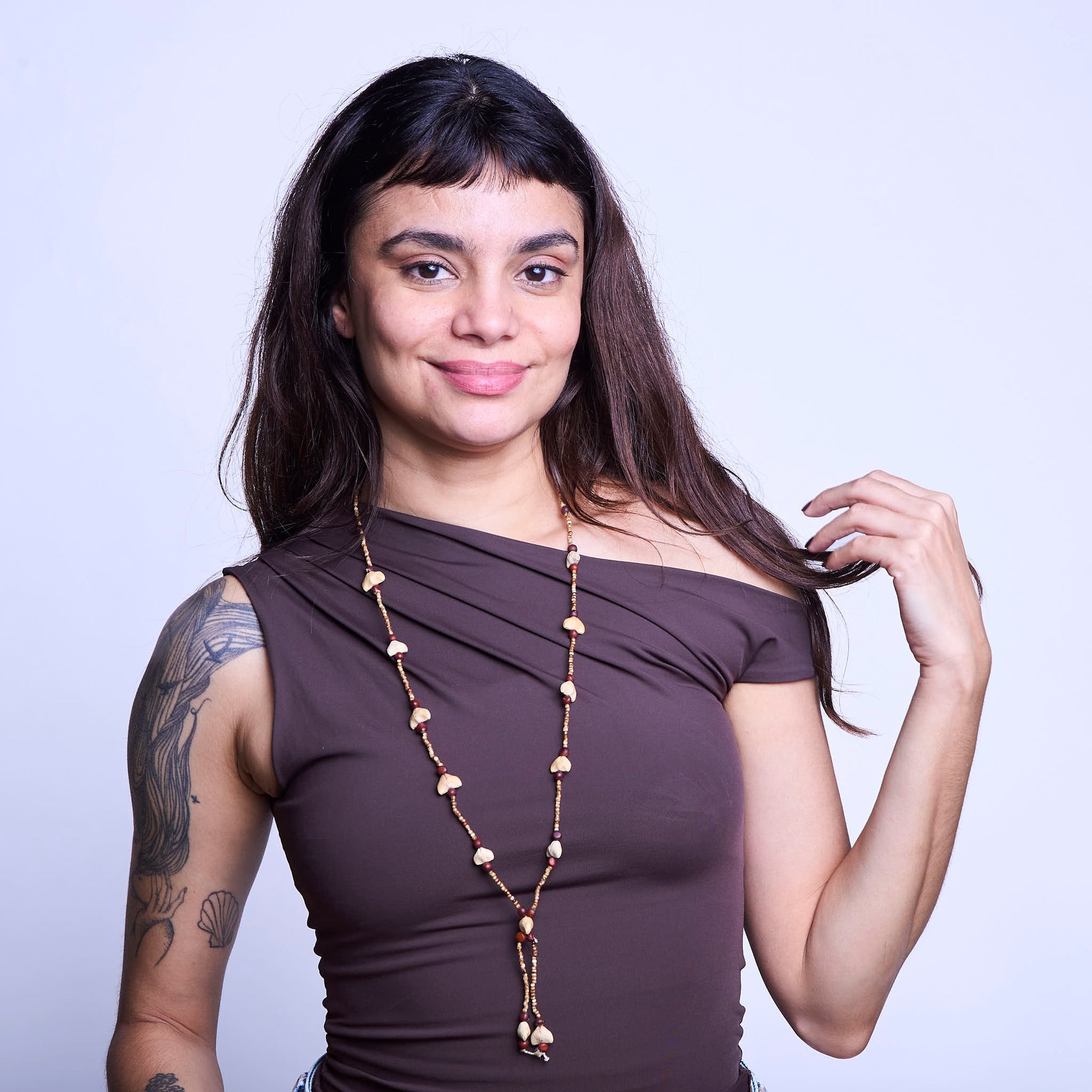 Uma mistura de tradição, beleza e consciência social está presente em Colar de Sementes Povo Indígena Krahô, uma peça artesanal única de comprimento 70cm feita com sementes. Design exclusivo criado pela artesã Raquel Krahô, esse colar é uma afirmação da moda com propósito e da valorização cultural.