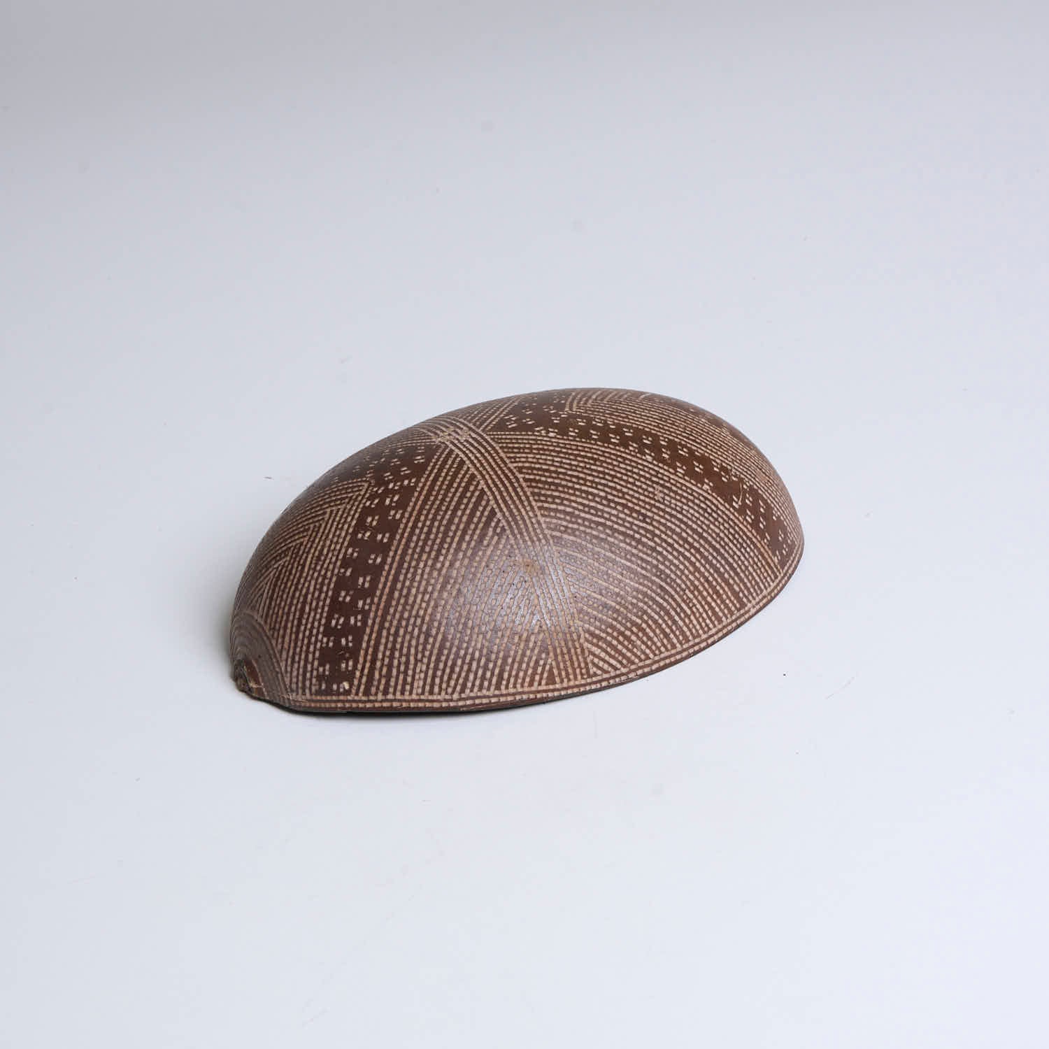 Cuia Indígena Povo Karajá é um objeto de poder que carrega consigo a identidade e a história do povo Karajá. Com tamanho aproximado em altura 4cm comprimento 17cm x 13cm Largura e feito com o fruto do cuieiro, essa peça artesanal foi produzida exclusivamente pela artesã do Povo Karajá.