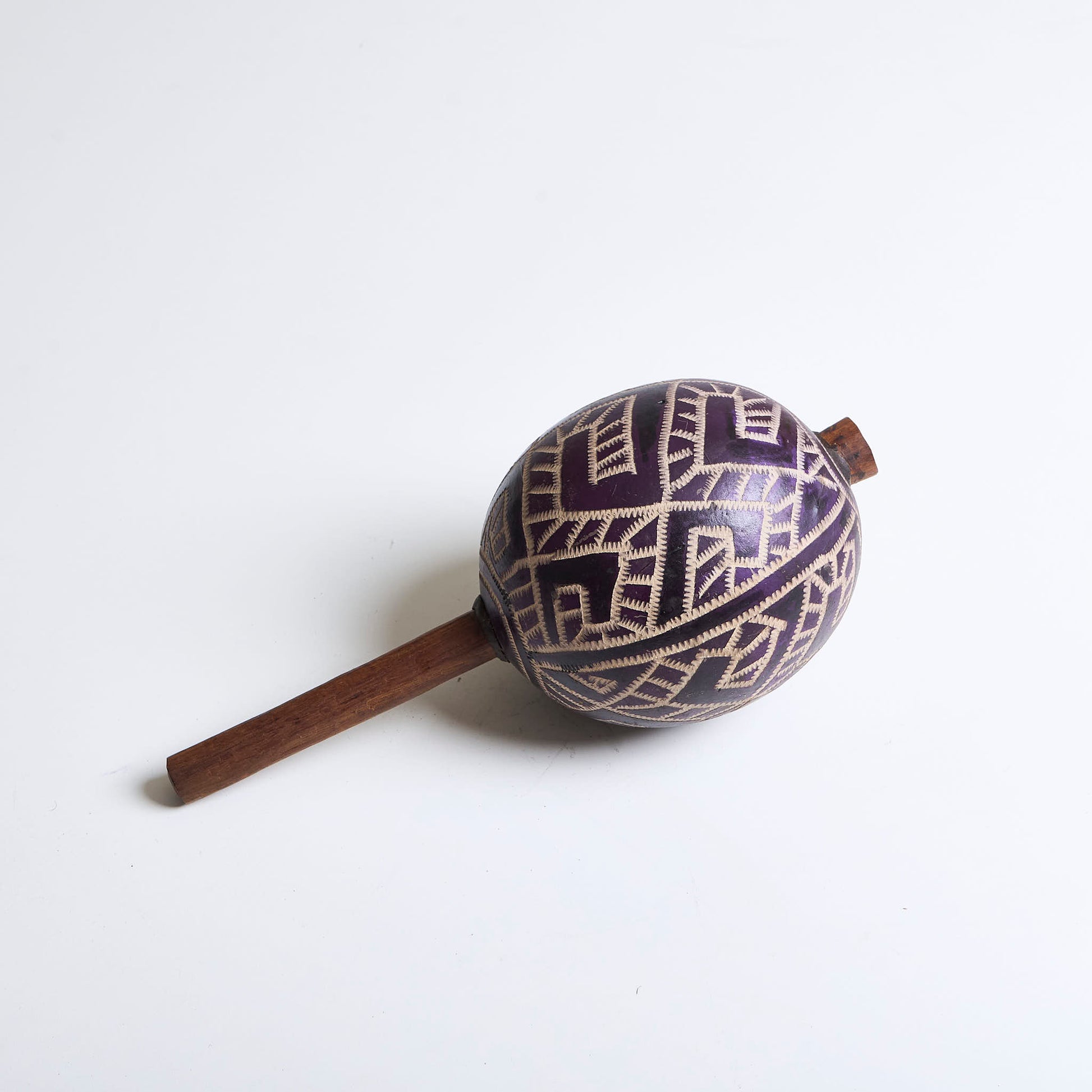 Instrumento Maracá Povo Karajá é um instrumento de poder que carrega consigo a identidade e a história do povo Karajá. Com tamanho aproximado em comprimento 27cm x 12cm Largura feita com Cabaça, Sementes e Madeira, essa peça artesanal foi produzida cuidadosamente pelos homens Karajá.
