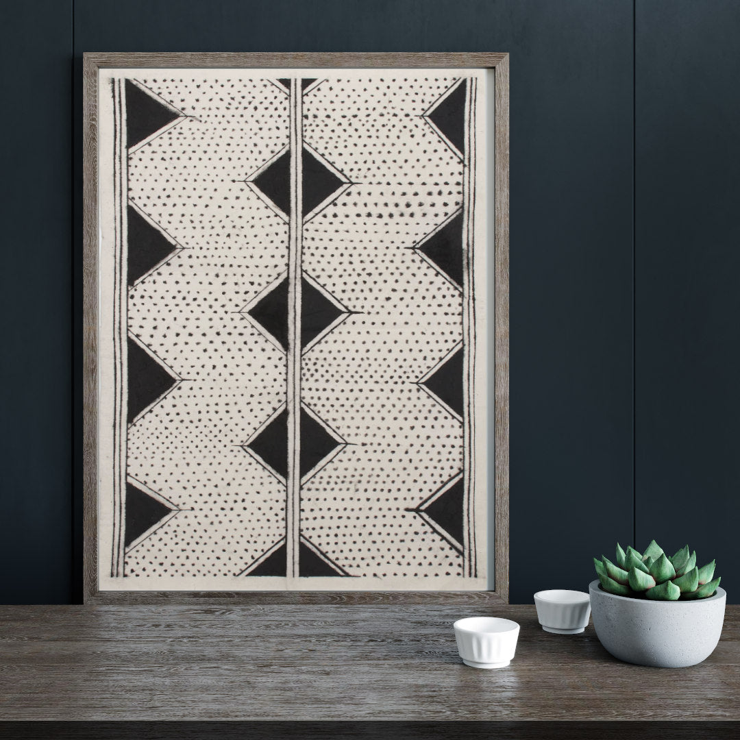 Renove a decoração da sua casa com Pintura Grafismo Indígena Povo Tapirapé, uma tela de pintura de tamanho aproximado 80cm x 58cm com Tinta natural de Jenipapo e carvão e o icônico grafismo indígena, criada pelo povo Tapirapé. Dê um toque especial à sua decoração e apoie a valorização da cultura com essa peça artesanal única.
